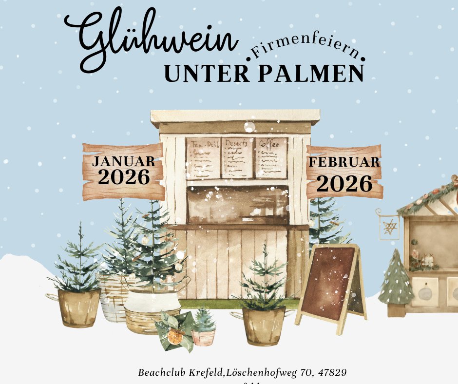 Dann bucht jetzt unseren Glühwein unter Palmen“ und holt eure Feier entspannt nach – in einzigartiger Atmosphäre.