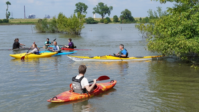 Anfänger können in einer sicheren Bucht des Rheines (auch ohne Strömung) die verschiedenen Bootstypen unter Anleitung ausprobieren oder mit dem Kajak durch den Slalomparcours fahren.