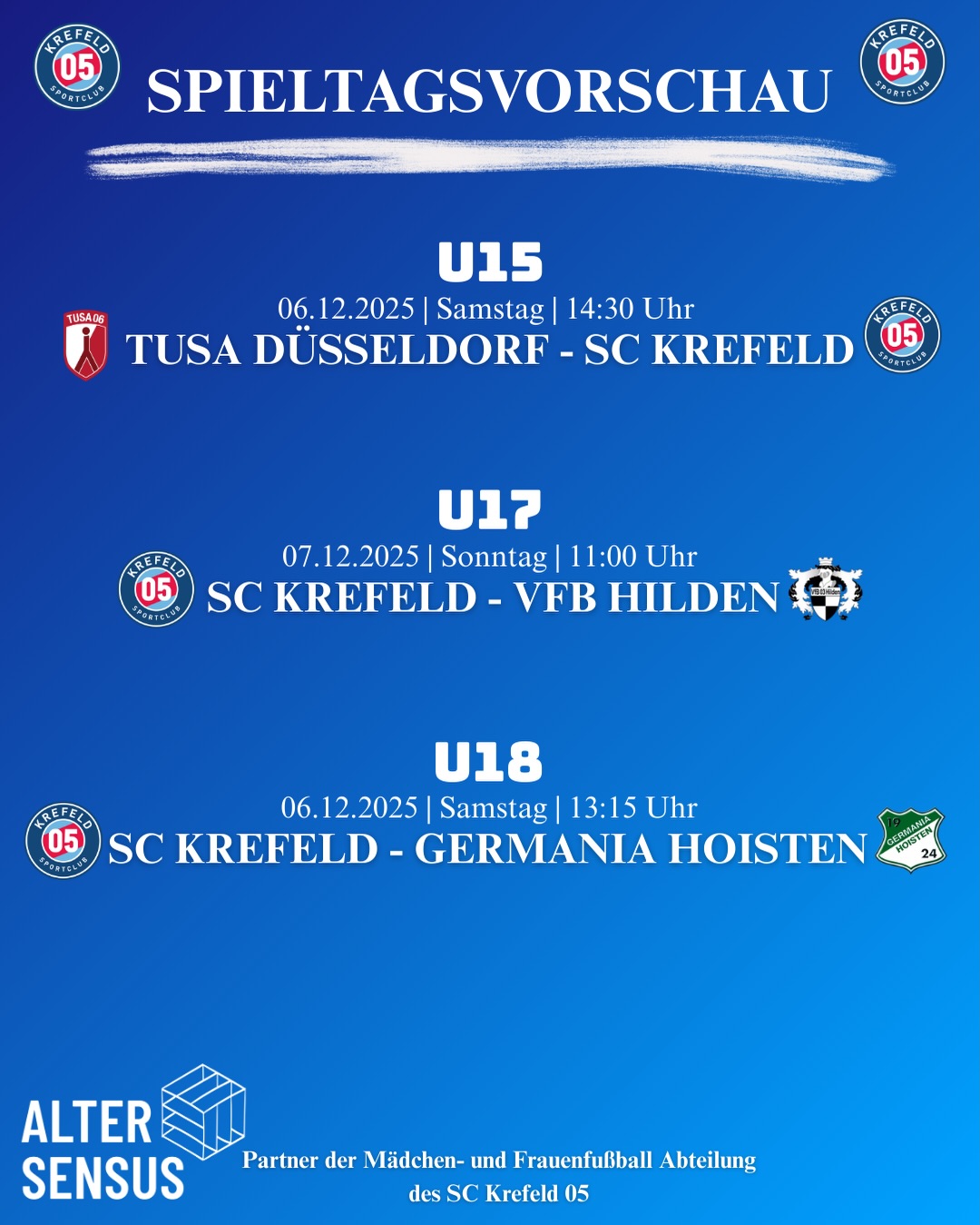 unter dem neuen Namen Sportclub Krefeld 1905 e.V. schreiben wir gemeinsam ein neues Kapitel – mit der gleichen Begeisterung und Hingabe für den Fußball! Auch im Mädchen- und Frauenfußball leben wir diese Werte täglich und möchten allen Spielerinnen eine Heimat bieten, in der sie ihr Talent entfalten können.