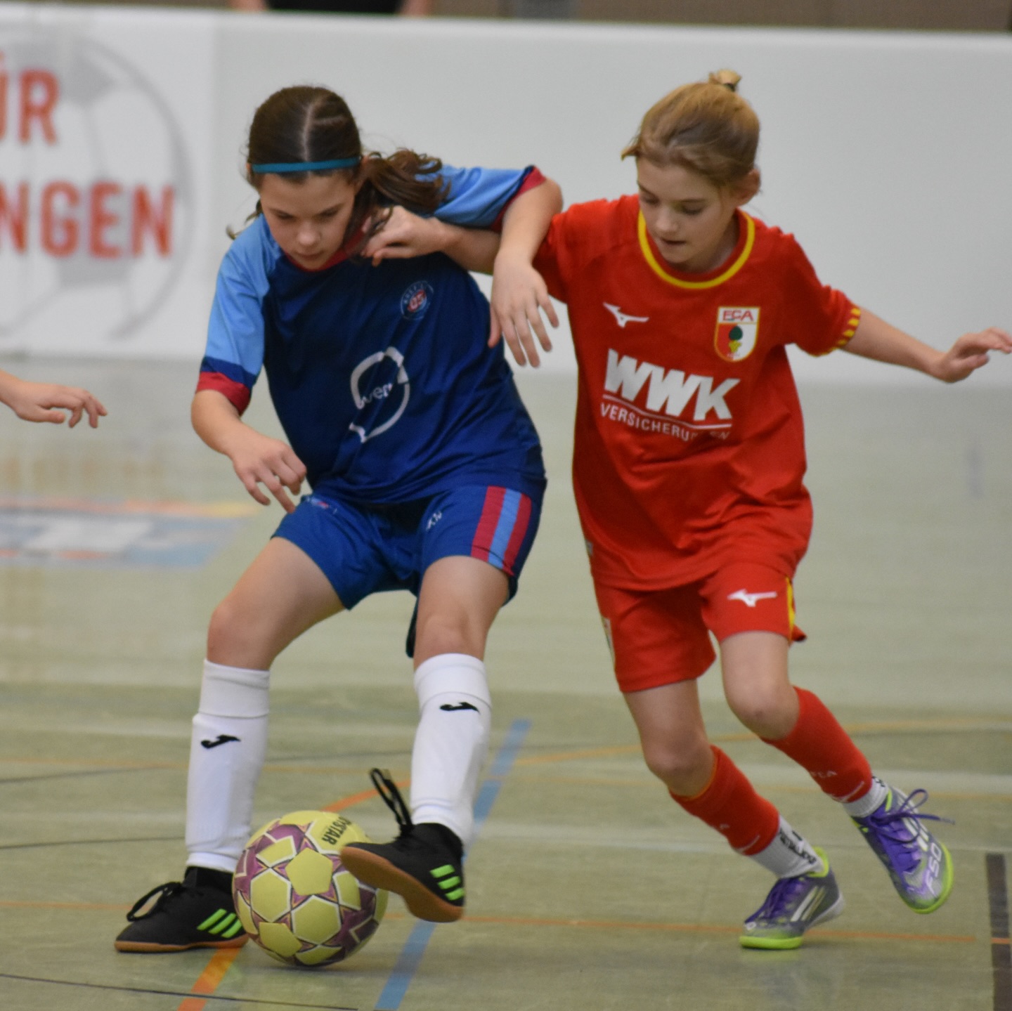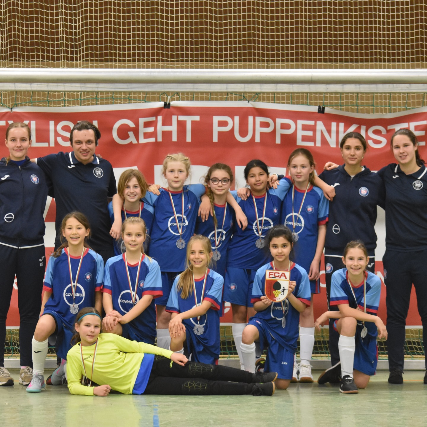 Beide Ziele haben unsere Mädels mit Bravour gemeistert. In der Gruppenphase warteten echte Brocken wie der Gastgeber Augsburg, der FSV Mainz 05 und Dukla Prag auf uns. Auch wenn wir uns jeweils geschlagen geben mussten, stimmte die Einstellung zu 100 %: Die Mädels bewiesen eine tolle Moral und kämpften in jedem Spiel bis zur letzten Sekunde.