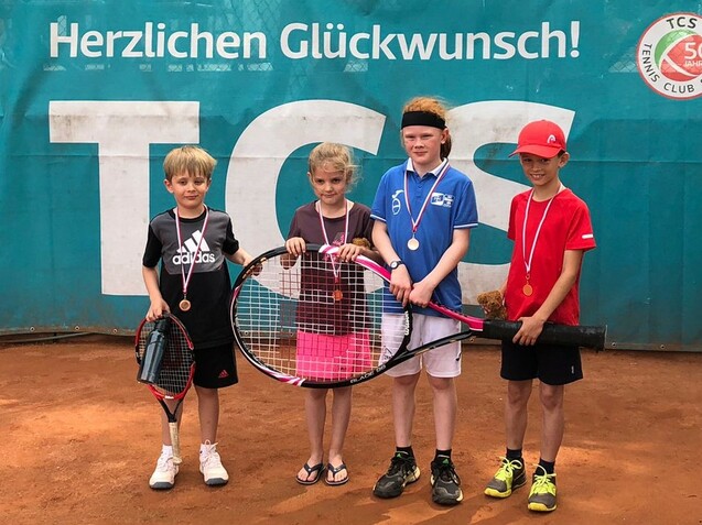 Bei den diesjährigen Jugend-Bezirksmeisterschaften waren wir mit vier Spieler*innen vertreten. Besondere Erfolge leisteten unsere Juniorinnen U12. Nach der Auslosung der Begegnungen schaffte es Annika Werner bis ins Viertelfinale. Im Viertelfinale musse sie sich der späteren Finalistin allerdings geschlagen geben. Alexa Kurti kämpfte sich von Beginn an erfolgreich weiter und überstand auch die Widrigkeiten im Halbfinale, als sich während des Matches mehrmals das Gurtband in der Mitte des Netzes löste und repariert werden musste. In diesem spannenden Halbfinal-Match gewann sie gegen die an Zwei gesetzte Isabelle Sanchez vom Gladbacher HTC 6:3 und 6:2. Das gestrige Finale gegen die an Eins gesetzte Meike Erkes vom Glehner TC konnte Alexa dann leider nicht für sich entscheiden. Trotzdem ein mega-Erfolg, herzlichen Glückwunsch! Damit hatte Alexa jedoch noch nicht genug: Ihre U12-Mannschaft spielte parallel zu Hause auf Bezirksligaebene das Medenspiel gegen die Spielgemeinschaft Viersen/Brüggen. Nach den Einzeln stand es 2:2 unentschieden. Alexa verstärkte das Doppel, so dass sich die Mannschaft des Trainers Frederik Brützel mit Alexa, Annika, Jeanne, Julia und Maya auch hier noch den Sieg holte.