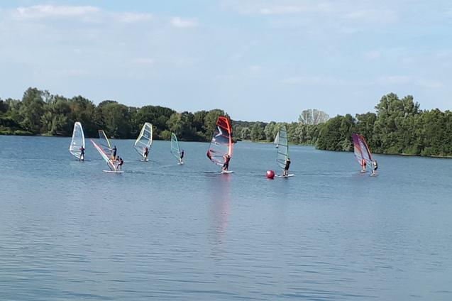 Immer freitags von 16:00 Uhr bis 18:00 Uhr findet am E-See das Windsurftraining statt. Dies nutzen auch die in der letzten Zeit zahlreich neu aufgenommenen Mitglieder sehr gerne. Während einige ihre ersten Versuche auf dem Windsurfboard machen, erlernen andere Mitglieder noch jede Menge Kniffs und Tricks. Dies geschieht unter der fachlichen Leitung unseres "frisch gebackenen" Surflehrers Thomas Tervooren und einiger "alten Hasen". So war an den letzten Freitagen so einiges los auf dem E-See. Wir laden interessierte Mitglieder aus den anderen Abteilungen herzlich ein, sich auch mal beim Windsurfen zu versuchen.