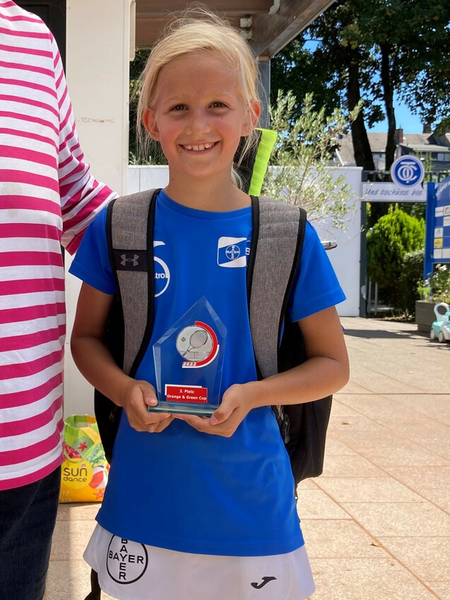Bei den diesjährigen Bezirksmeisterschaften der U9 Orange Cup und U10 Green Cup vom 05. bis 09.08.2022 in Mönchengladbach-Odenkirchen starteten bei den U9 Juniorinnen insgesamt 13 Teilnehmerinnen, die sich erst einmal für das Hauptfeld qualifizieren mussten. Der SC Bayer 05-Spielerin Jeanne Tersteegen wurde die einzige 4er-Gruppe zugelost, so dass sie bereits in der Qualifikation drei Matches spielen musste, von denen sie zwei sehr deutlich gewann.